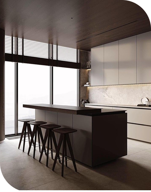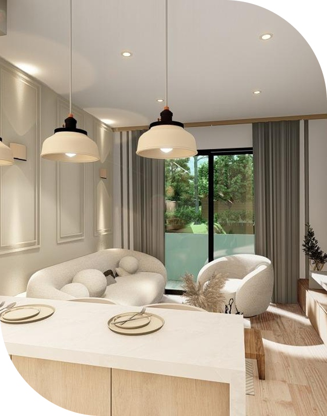 Un diseño moderno con líneas limpias, iluminación estratégica y materiales elegantes. La combinación de madera, mármol y tonos neutros crea un espacio cálido y sofisticado para el día a día.
